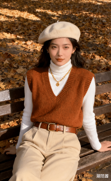 收腰羊毛马甲 + 针织衫 + 西装裤